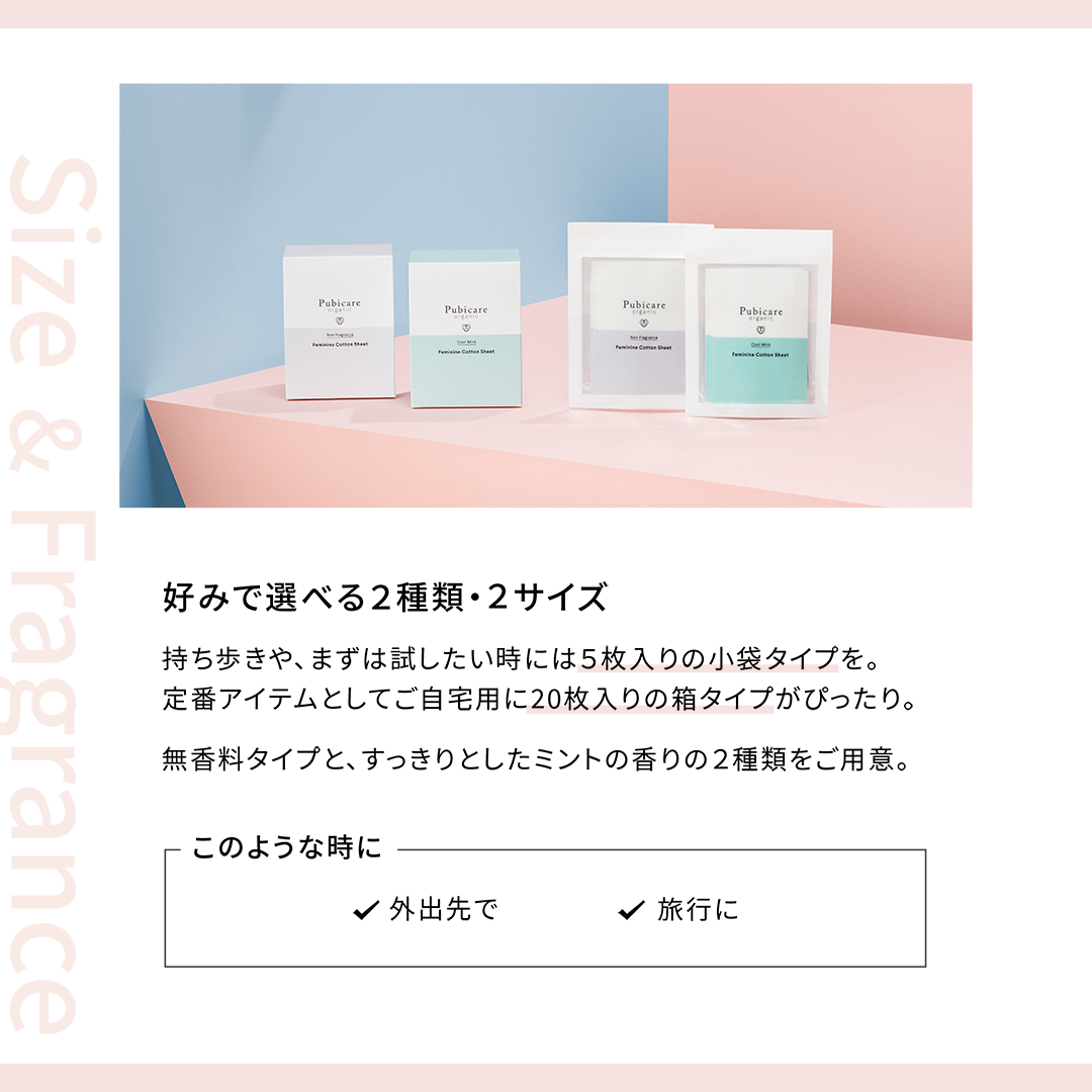 デリケートゾーンのpH値に合わせた弱酸性。外出先でデリケートゾーンのムレや汚れが気になったら、さっとひと拭きで清潔に。